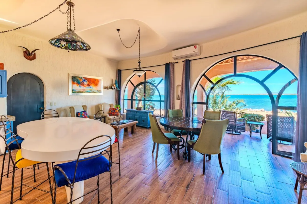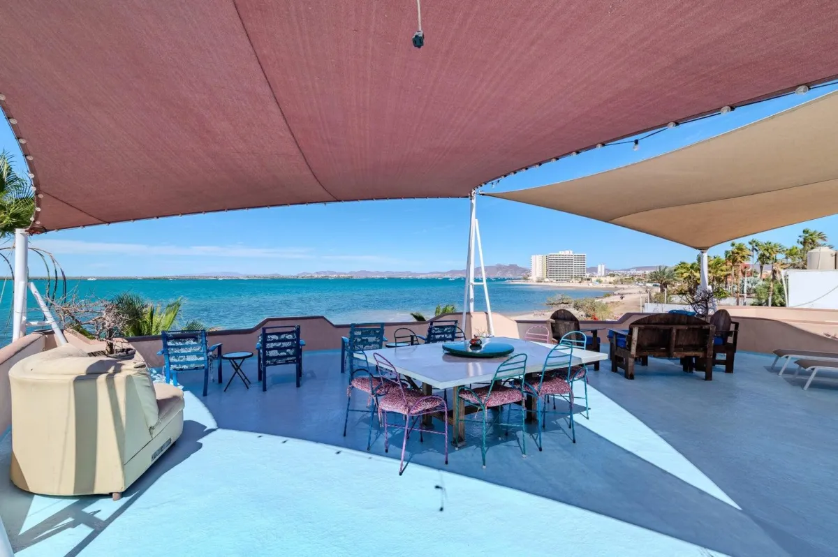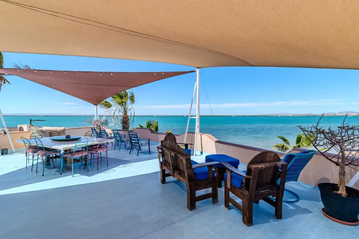 Located in the coveted La Posada neighborhood of La Paz, this property delivers the rare combination of direct Sea of Cortez frontage (18m!), a pool + jacuzzi oasis, and flexible living spaces designed for family, friends, or rental income.